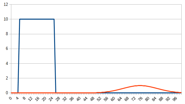 OK. Let's redo the examples with a smaller bell curve for curve g (we just drop the height from 10 to 1):